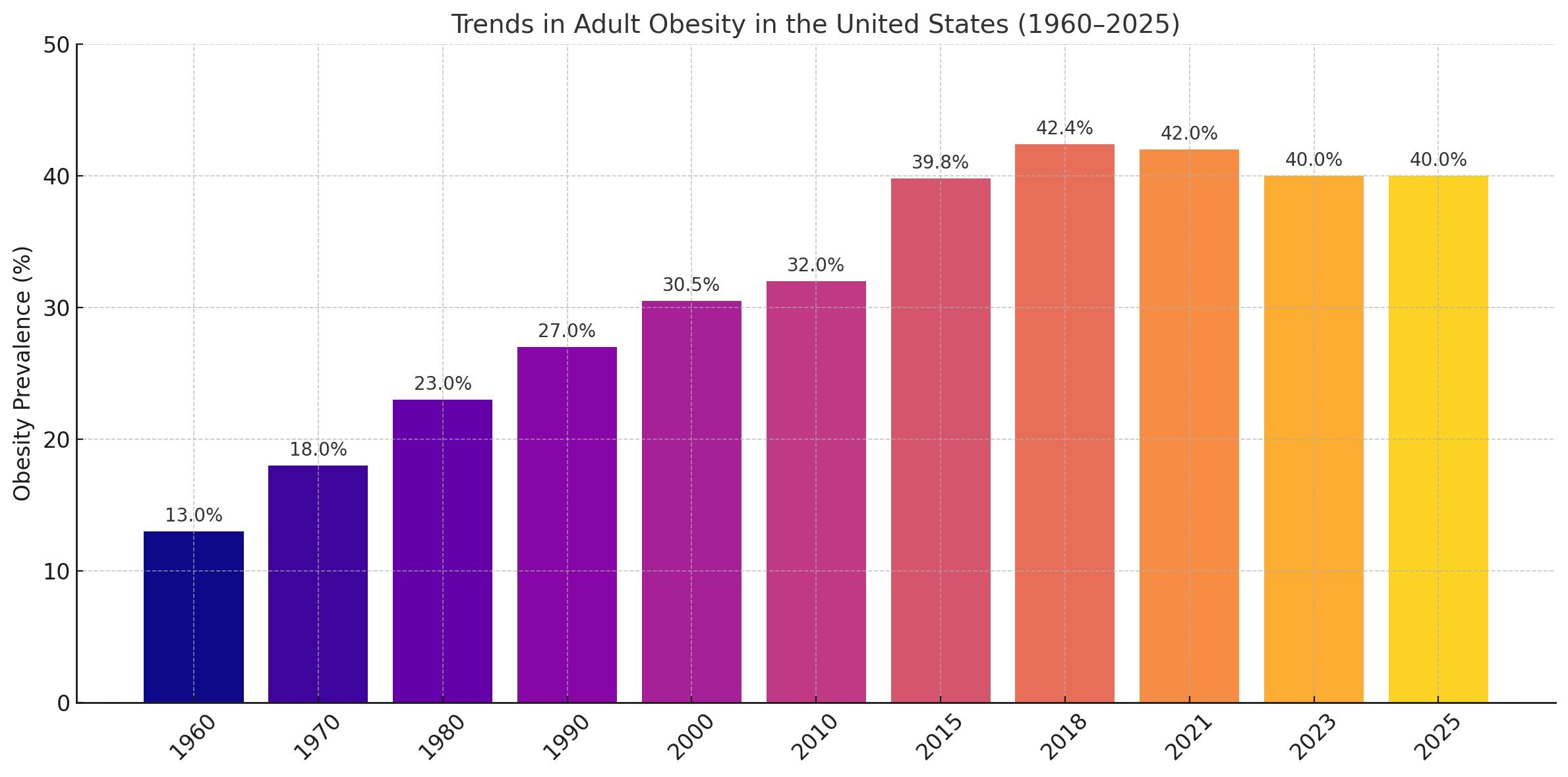 GLP‑1 receptor agonists — including Ozempic, Wegovy, Mounjaro, and Zepbound — have had a transformative impact on obesity management in the United States. Following a threefold increase in adult obesity rates from 1960 to 2021, recent U.S. health data now shows a modest but significant 2% decline from 2022 to 2025, a shift widely attributed to the rising use of GLP‑1 medications.